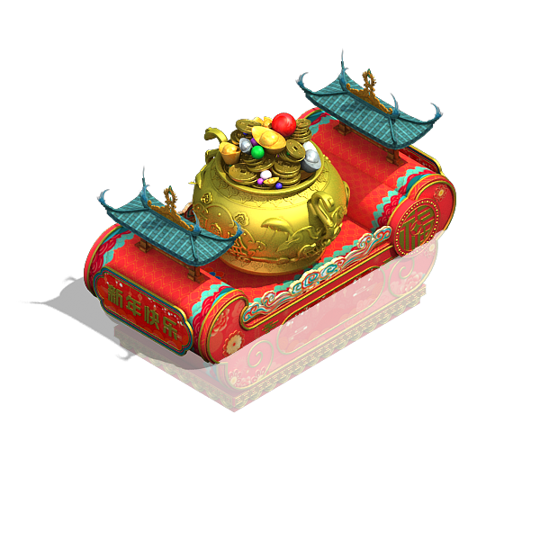 开启后有概率获得以下道具:稀有年兽骑士行军外观、喜庆春节城堡外观、春节系列头像、舞狮建设图纸、钻石等奖励。